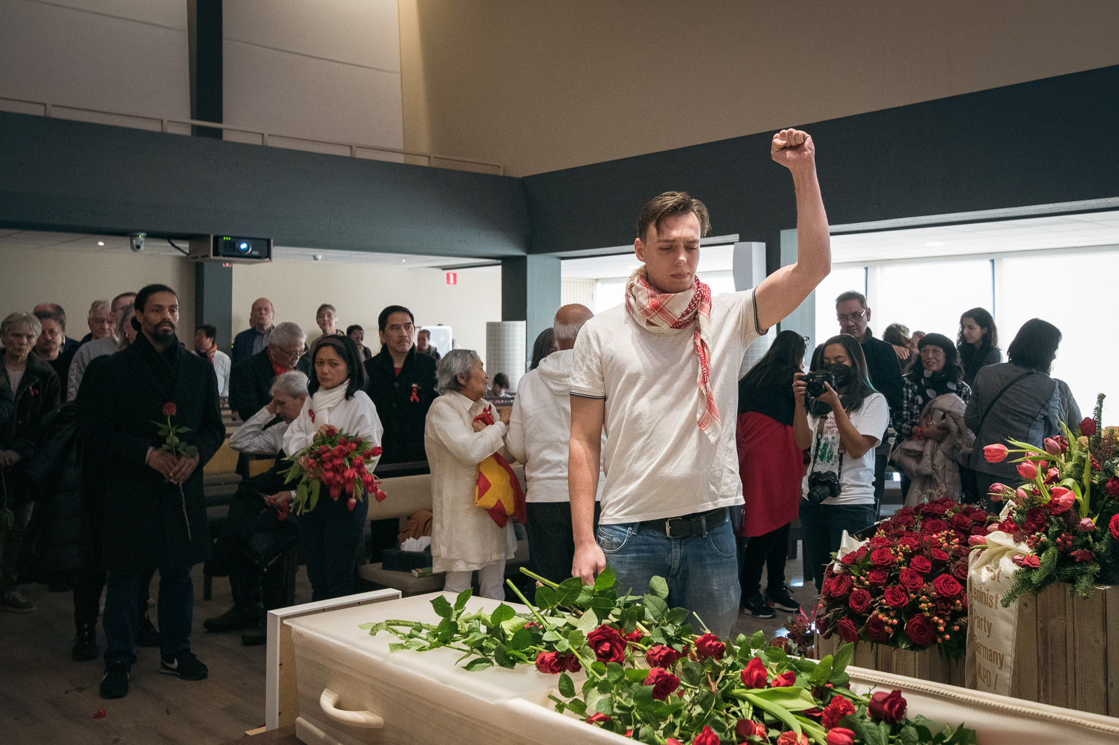 Family, friends and comrades salute Ka Joma at the cremation ceremony in Utrecht, 27 December. Picture: Nwel Saturay.